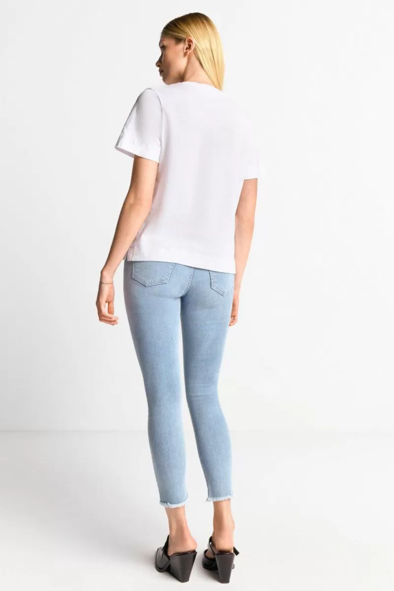 Dank stylischem Statement-Print auf Französisch ist dieses weiße T-Shirt perfekt für coole Casual-Looks! Der lockere Schnitt und die weiche Baumwolle machen es zum lässigen Must-have für Freizeitoutfits.